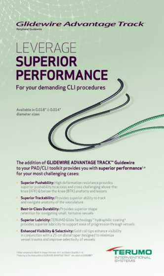The addition of GLIDEWIRE ADVANTAGE TRACK™ Guidewire to your PAD/CLI toolkit provides you with superior performance1,a for your most challenging cases: